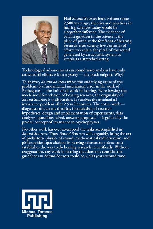 To answer, Sound Sources traces the underlying cause of the problem to a fundamental mechanical error in the work of Pythagoras—the hub of all work in hearing. By redressing the mechanical foundation of hearing sciences, the originality of Sound Sources is indisputable. It resolves the mechanical invariance problem after 2.5 millenniums. The entire work—diagnoses of current theories, formulation of research hypotheses, design and implementation of experiments, data analyses, questions raised, answers proposed—is guided by the pivotal concept of invariance in psychophysics.